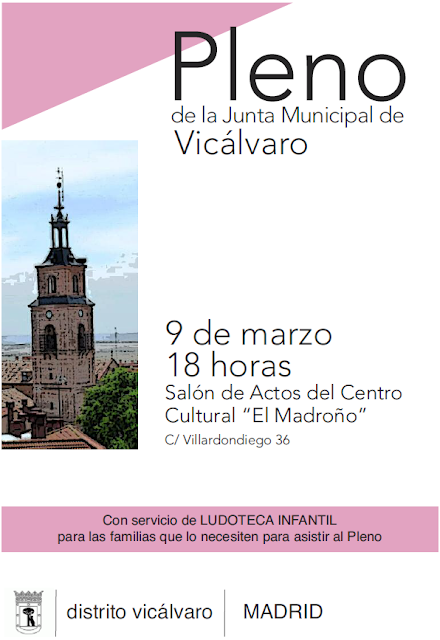 , se accede a la convocatoria y al orden del día del Pleno ordinario del Distrito de Vicálvaro, a celebrar el próximo jueves 9 de marzo.